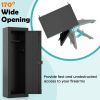 Constructed from solid cold-rolled steel, this long gun safe provides exceptional durability and long-lasting protection. The reinforced door swings open to a wide 170°, allowing fast and unobstructed access in different settings, whether in closets or bedrooms. Inside, protective EVA padding lines both the top shelf and floor to prevent scratches on your firearms. The mechanical lock requires no batteries and comes with 2 keys, ensuring reliable and synchronized locking without electronic failures. This gun storage securely holds up to 8 rifles upright, with a storage shelf that keeps your extra accessories well organized.
