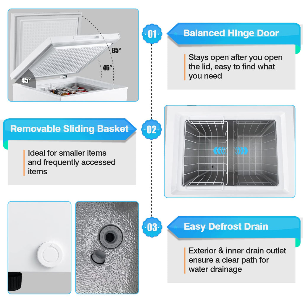 ARLIME Chest Freezer 5 Cu.ft Single Door Deep Refrigerator with 7-Grade Temperature Range -11°F to 10°F