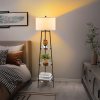 This floor lamp is equipped with E26 socket base. So you can choose compatible E26 bulbs (not included) according to your needs to DIY your unique light. Thanks to the beige linen lampshades, the floor lamp will emit soft light, creating a cozy and warm atmosphere, which is suitable for enjoying reading or chatting with the family. And you can simply pull the pull chain to turn the light on/ off. Under the lampshade, there are 3 open shelves, providing ample storage space for different items, and you can easily get what you want when you need it.
