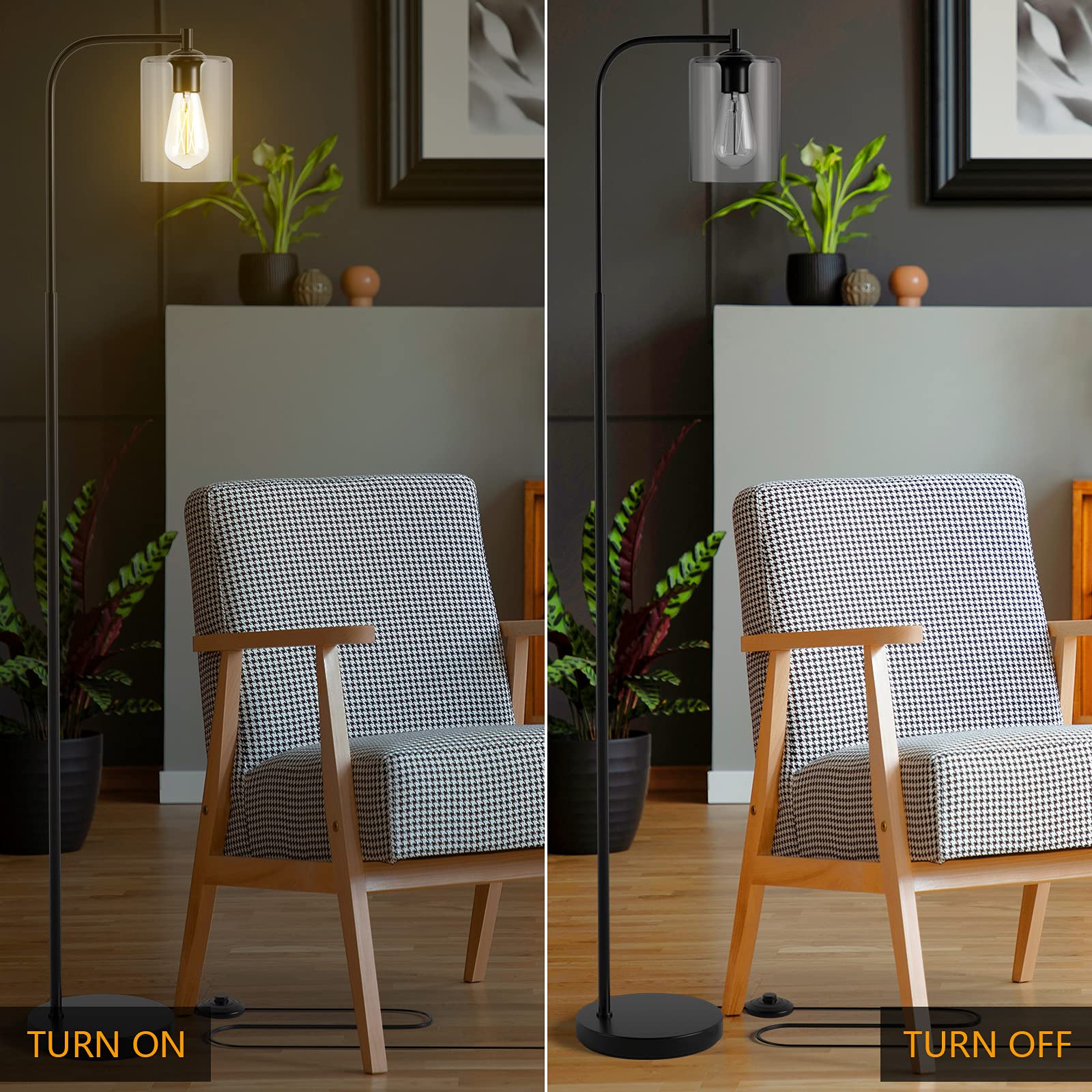 - Industrial Floor Lamp: Our metal floor lamp has a unique industrial design that can quickly catch the attention of other guests and impress them. The special transparent glass lampshade makes it ideal for multiple styles of decoration, such as minimalist, industrial and mid-century.