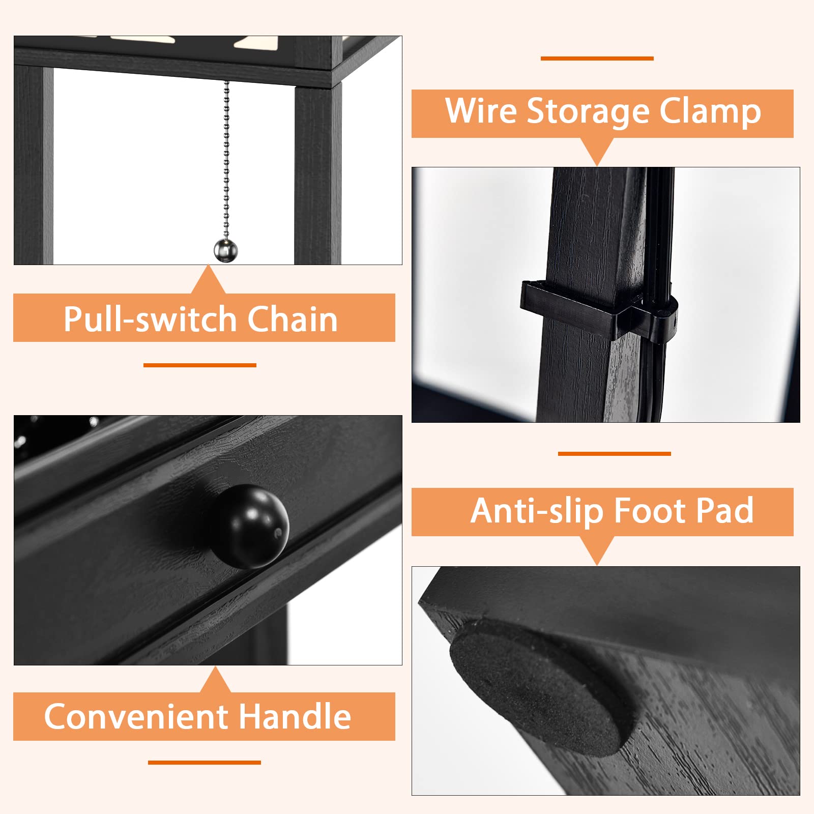 - User-friendly Design: You can turn on/off light conveniently because this display standing lamp is designed with a pull-switch chain. Moreover, the high quality MDF as well as the anti-slip foot pads ensure the strong construction to this floor lamp . And the smooth surface allows you to clean it without hassle.