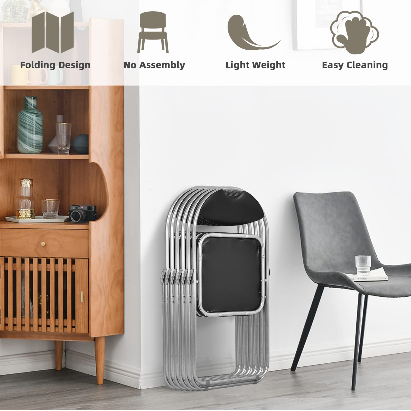 - 【6 pack Folding Chairs】: The foldable chairs come with non-slip pads, which not only ensure your safety, but also effectively protect your floor from scratches. In addition, the black metal folding chair is suitable for any space, such as office, school, courtyard, living room.