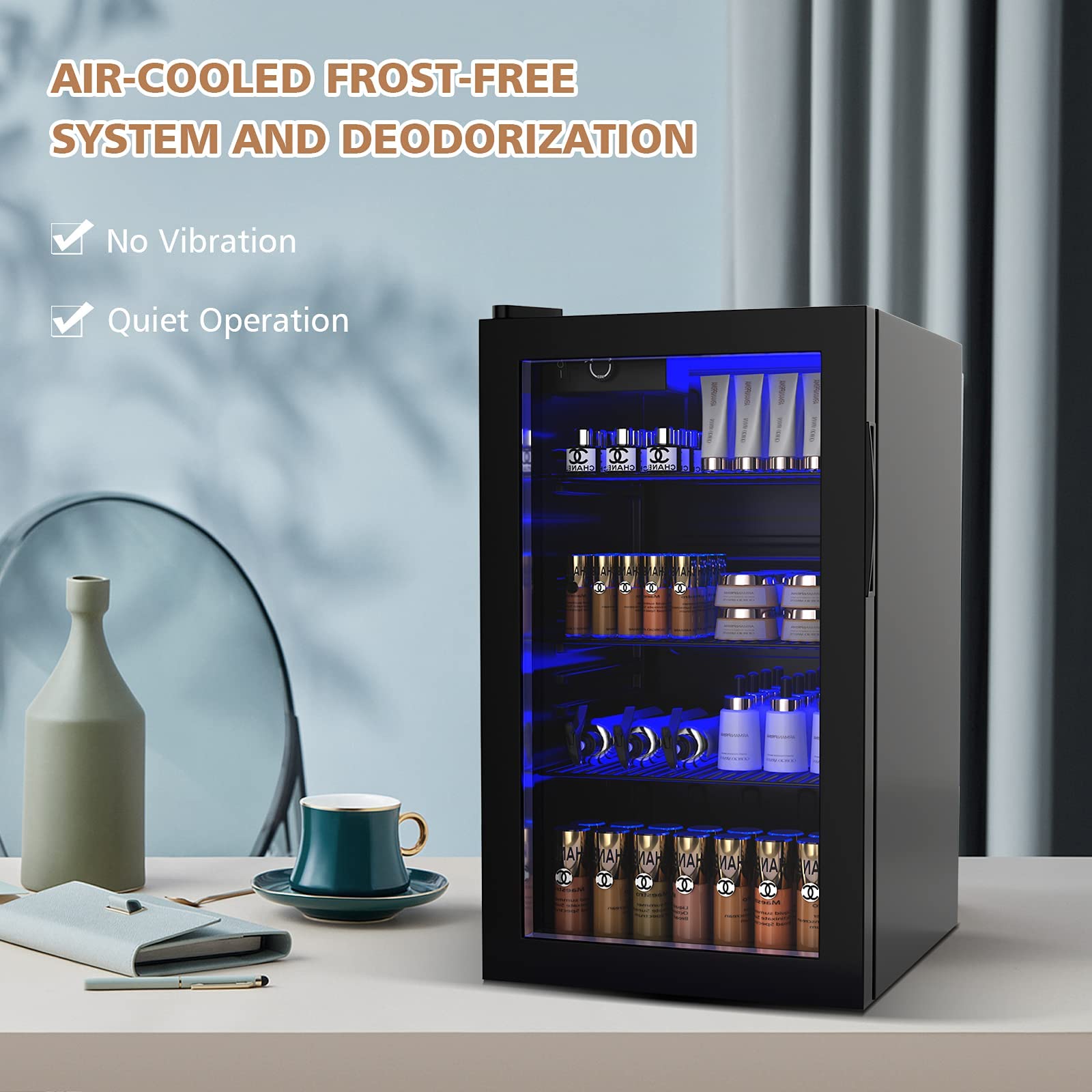 - 🍾【3.2 Cu. Ft Large Capacity】: With 3.2 cubic feet large storage room, the beverage refrigerator can hold up to 120 can. cans. And the drink dispenser comes with 3 adjustable steel shelves, which allows for the storage of both wine and beverages, including tall bottles and cans. Soft blue backlit LED lighting and transparent glass door make the beverage refrigerator easy to see what drinks are being chilled.