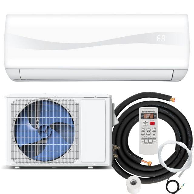 • 【4-IN-1 System】: This split air conditioner has 4 powerful combination for your whole year's needs, which are cooling, heating, dry and fan modes. Meanwhile the air conditioner offers wide temperature control range between 60℉/15.5℃ and 90℉/32℃. In addition, this air conditioner features dehumidification capacity of 67 pints per day.