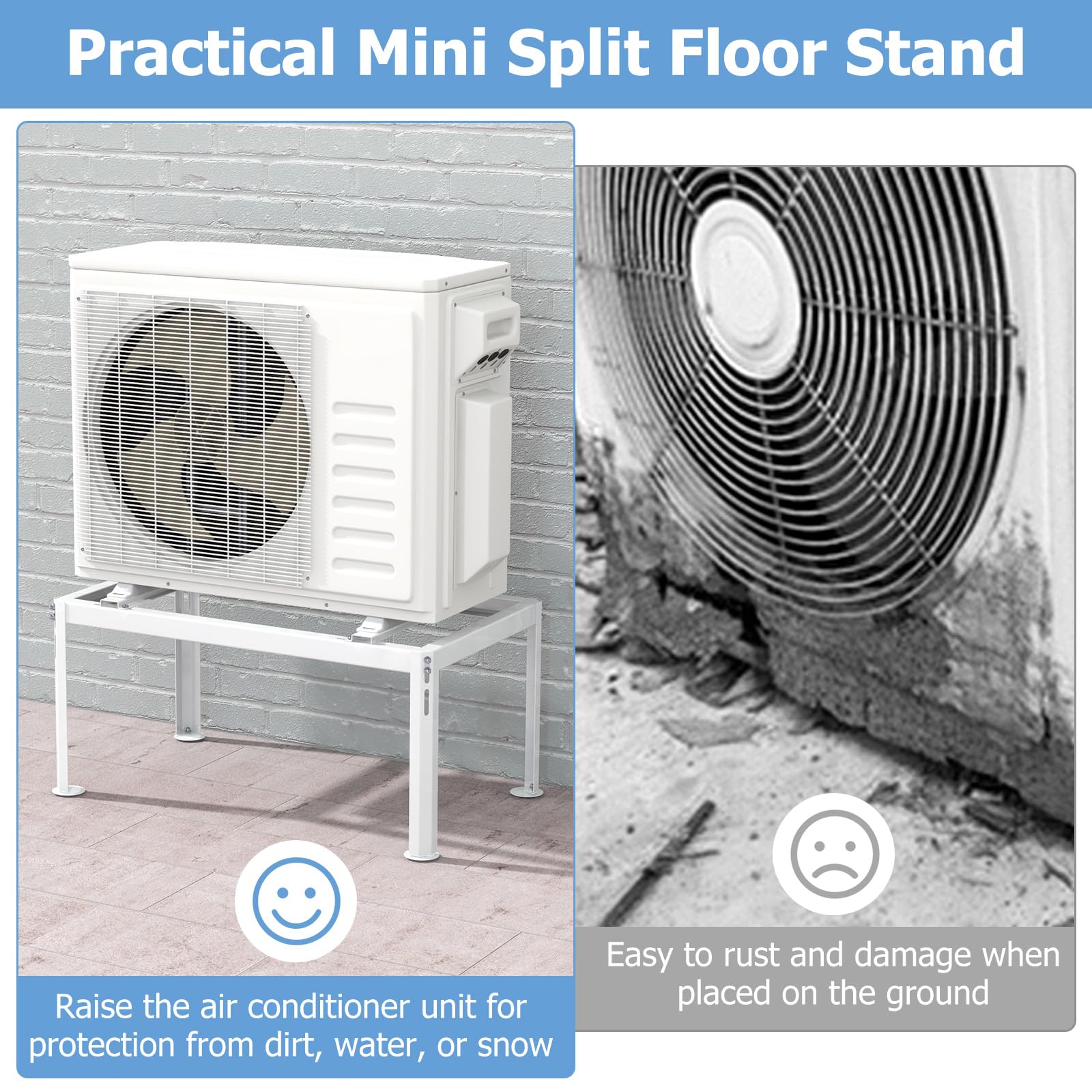 - Practical Mini Split Floor Stand: The mini split ground stand is suitable for 9000-36000 BTU air conditioners. You can place your air conditioner on it to raise the air conditioner unit for protection from dirt, water, or snow.