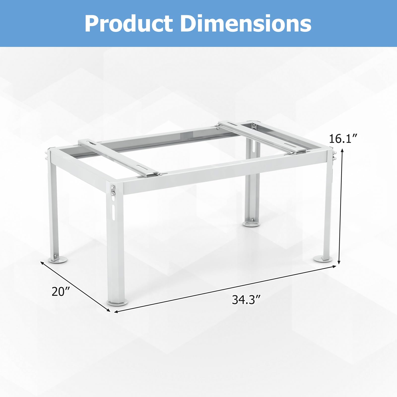 - Offers Multiple Adjustment: Adjustable height, width and length of the stand help it fit air conditioners of different sizes. The height can be adjusted from 12.6” to 16.1”. The length is 15.7"-27.4" adjustable, while the width can be changed between 11.8” and 18.1”.