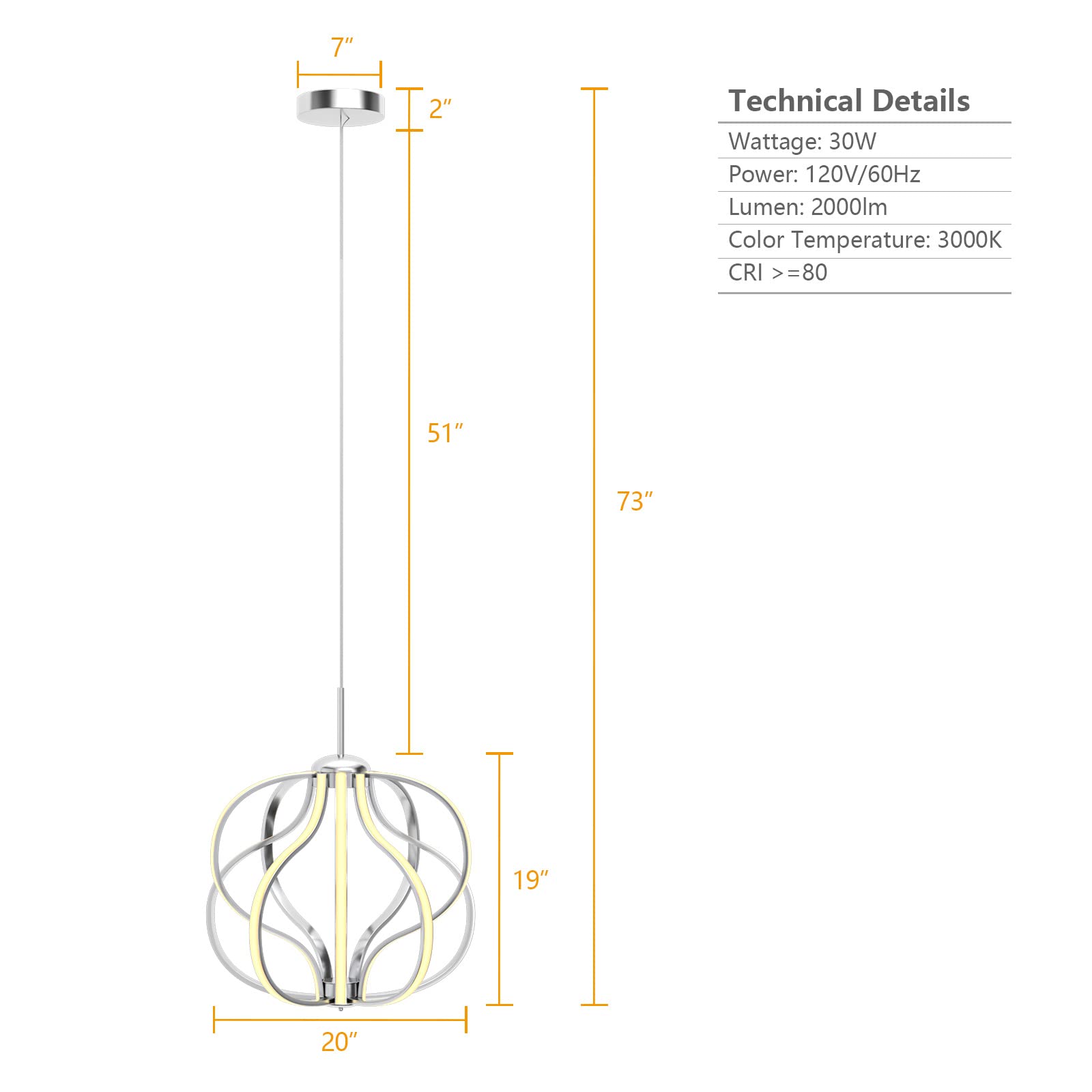 - Modern Pendant Light: Composed of aesthetic design yet simple style, this LED chandelier presents a contemporary addition to your home decoration. Meanwhile, it is designed with a chrome finished, which makes it blend seamlessly with your interior renovation.