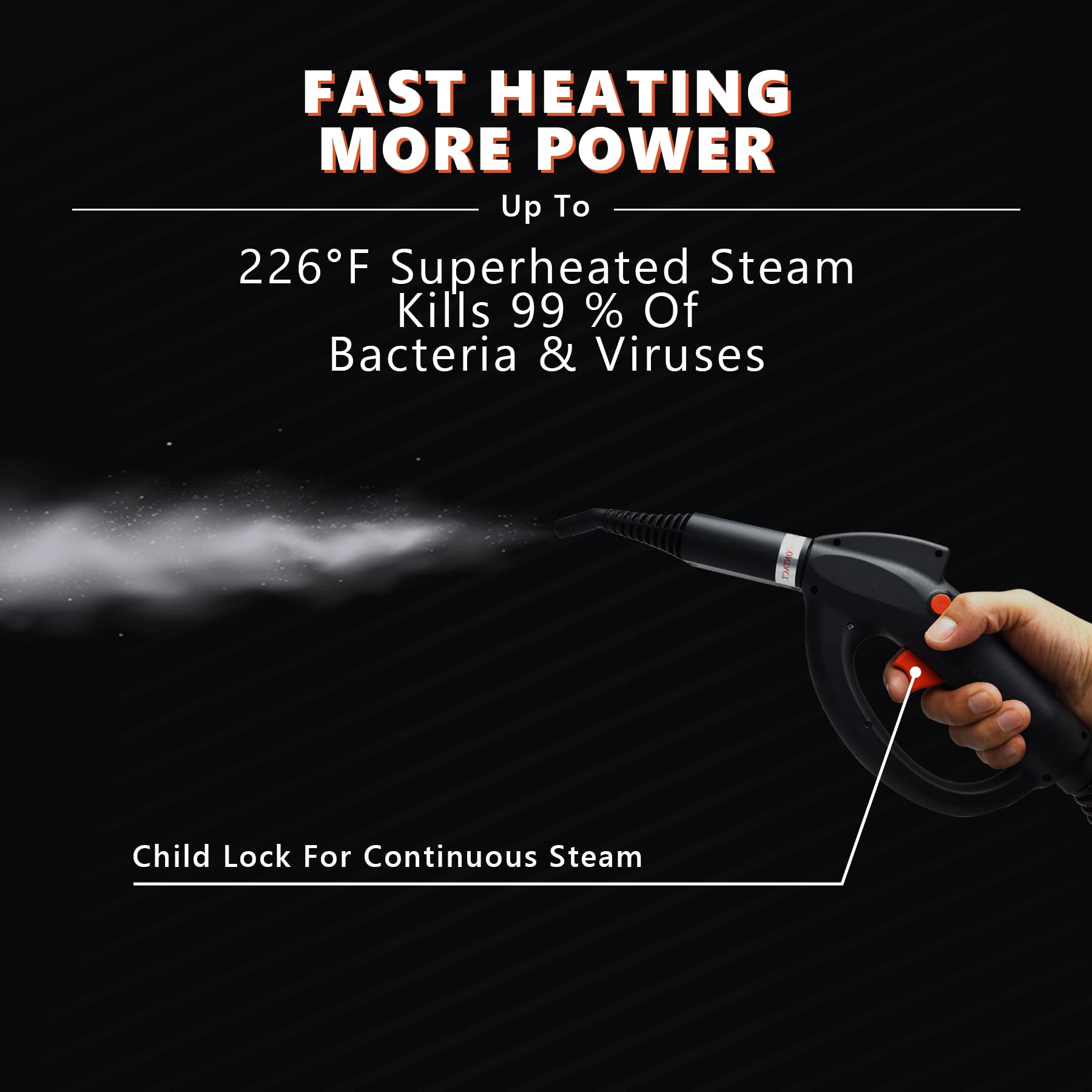 - 【Efficient Deep Cleaning】Steam Cleaner with high temperature steam up to 226°F and steam working pressure up to 4 bar, so it can easily removes all kind of dirt in various surface and making the room cleaner. Deeply clean assure Child & Pet Safe. (Maximum power 2000W, rated power 1600W)