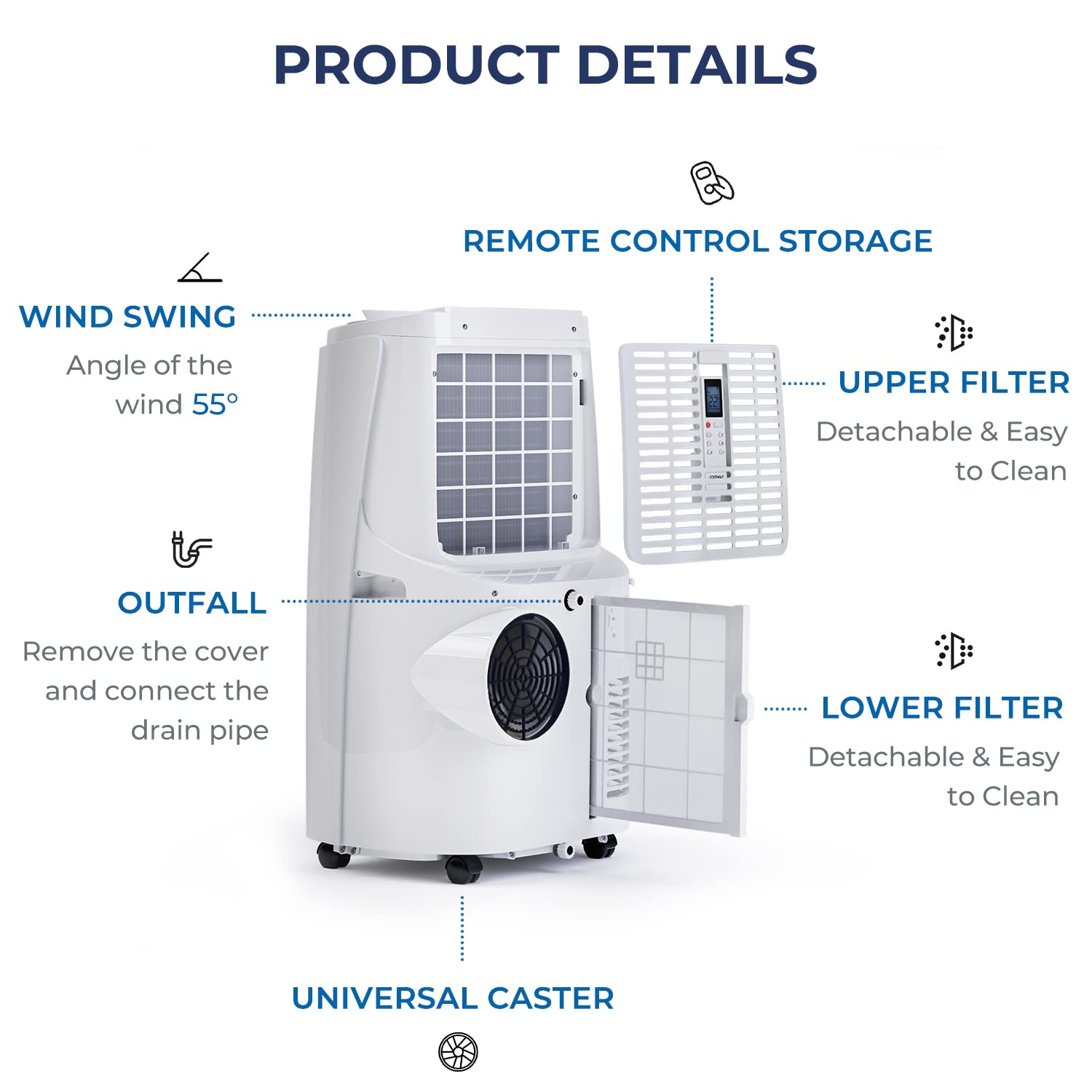 - ❄️You deserve fast and efficient cooling days! - Adopting R32 high-efficiency and more eco refrigerant, the 12,000 BTU portable air conditioner brings room temperature to 65°F in just a few minutes with a 480 m³/h high airflow, and chilled air delivers instantly to corners of a room of up to 450 sq. ft. in an instant, stable and efficient way to make you feel cool all the time in the hot Summer!