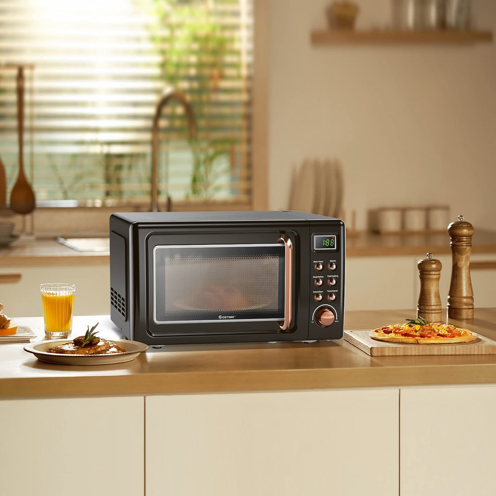 - 【Small-size & Retro-style】Compact countertop microwave oven is perfect for small apartments, studios, dorms, etc. Its retro appearance adds a noble and elegant atmosphere to the room. 【ARLIME provided 1-year Warranty.】