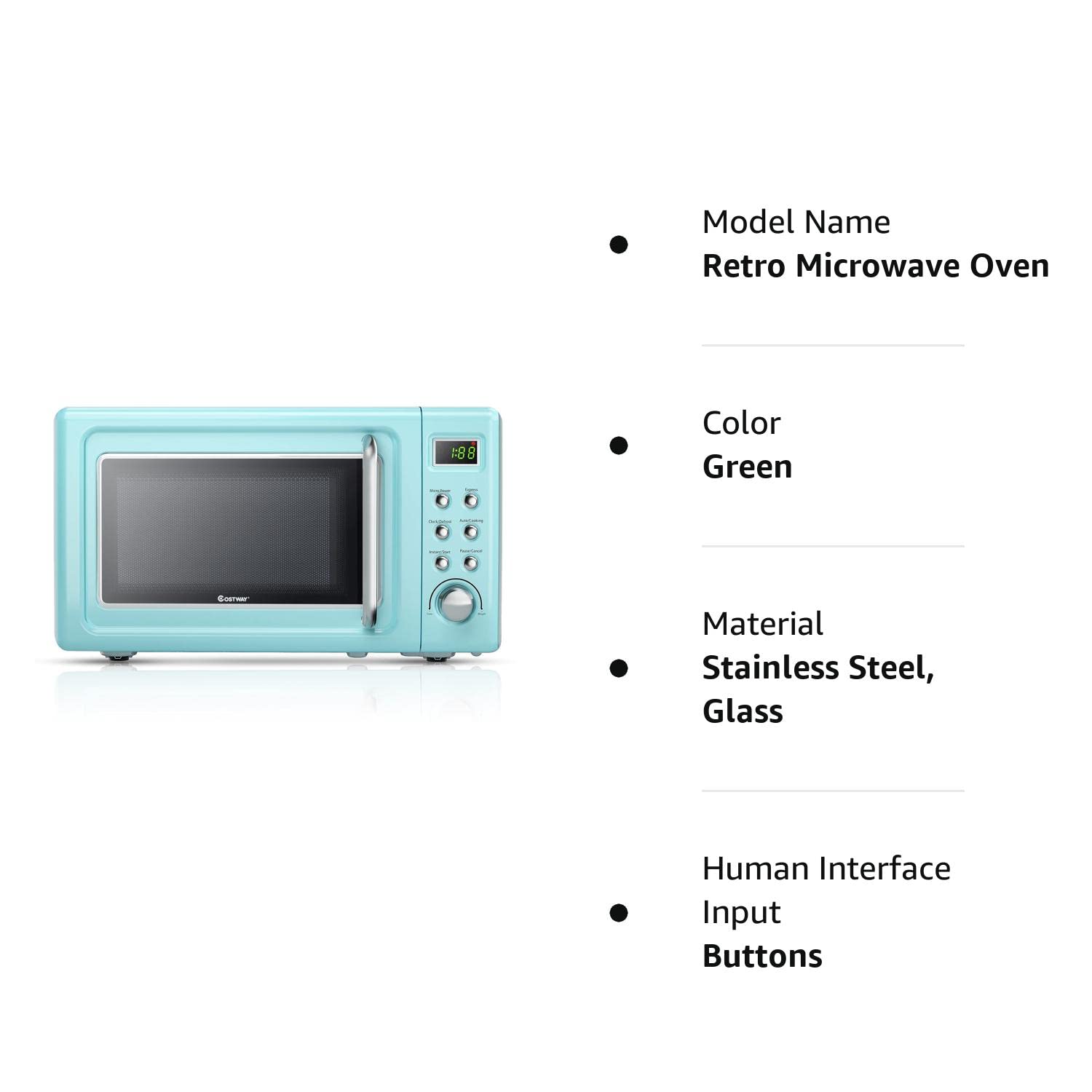 Darling aqua colored microwave! Fits perfectly on my countertop! Makes a great accent in your kitchen! Love the size!
