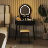 Crafted for style and functionality in compact living spaces, this elegant dressing table combines practicality with modern design. Its frame is supported by sturdy legs made of durable acacia wood, offering both strength and a touch of natural beauty. The standout feature is the circular LED mirror, which provides 3 color temperatures and adjustable brightness to create the perfect lighting for any task. Completing the set is a comfortable, upholstered stool, making this piece a perfect and complete vanity station for your daily routine.