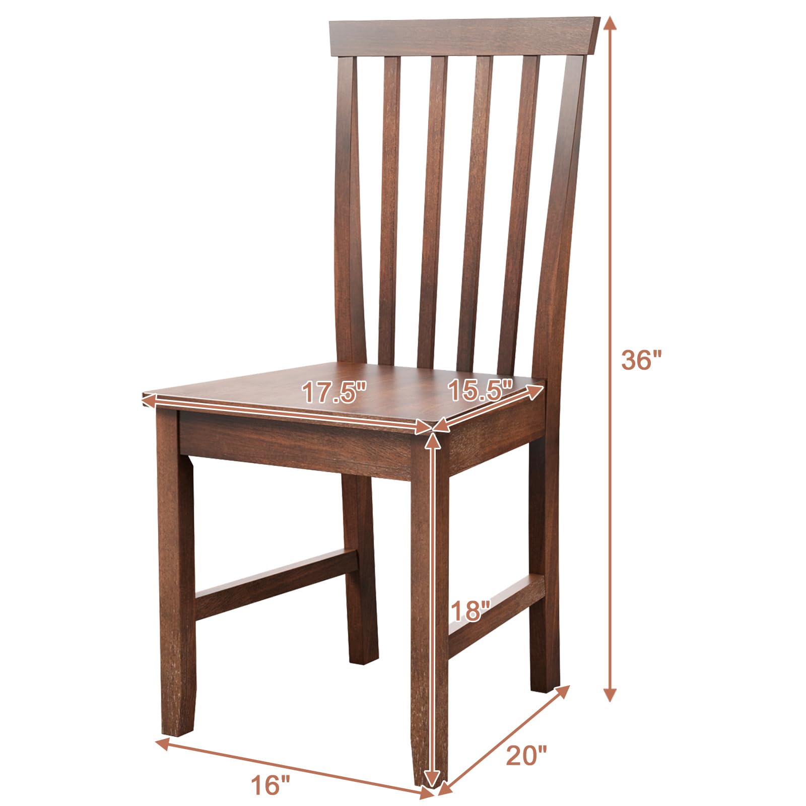 Perfectly combing the elegant design with practical functionality, the transitional dining chairs will be an optimal choice for you to create a unique look in room. Considering that you may feel tired after sitting for long time, the chairs adopt high slat back backs to provide extra comfort. It is worth mentioning that the thickened legs are made of premium rubber wood, which features better durability and sturdiness to serve you better. The seat and overall structure are reinforced so as to ensure higher load bearing capacity. Bring the chairs to your living room, dining room or bedroom, to let them add flair to those places.