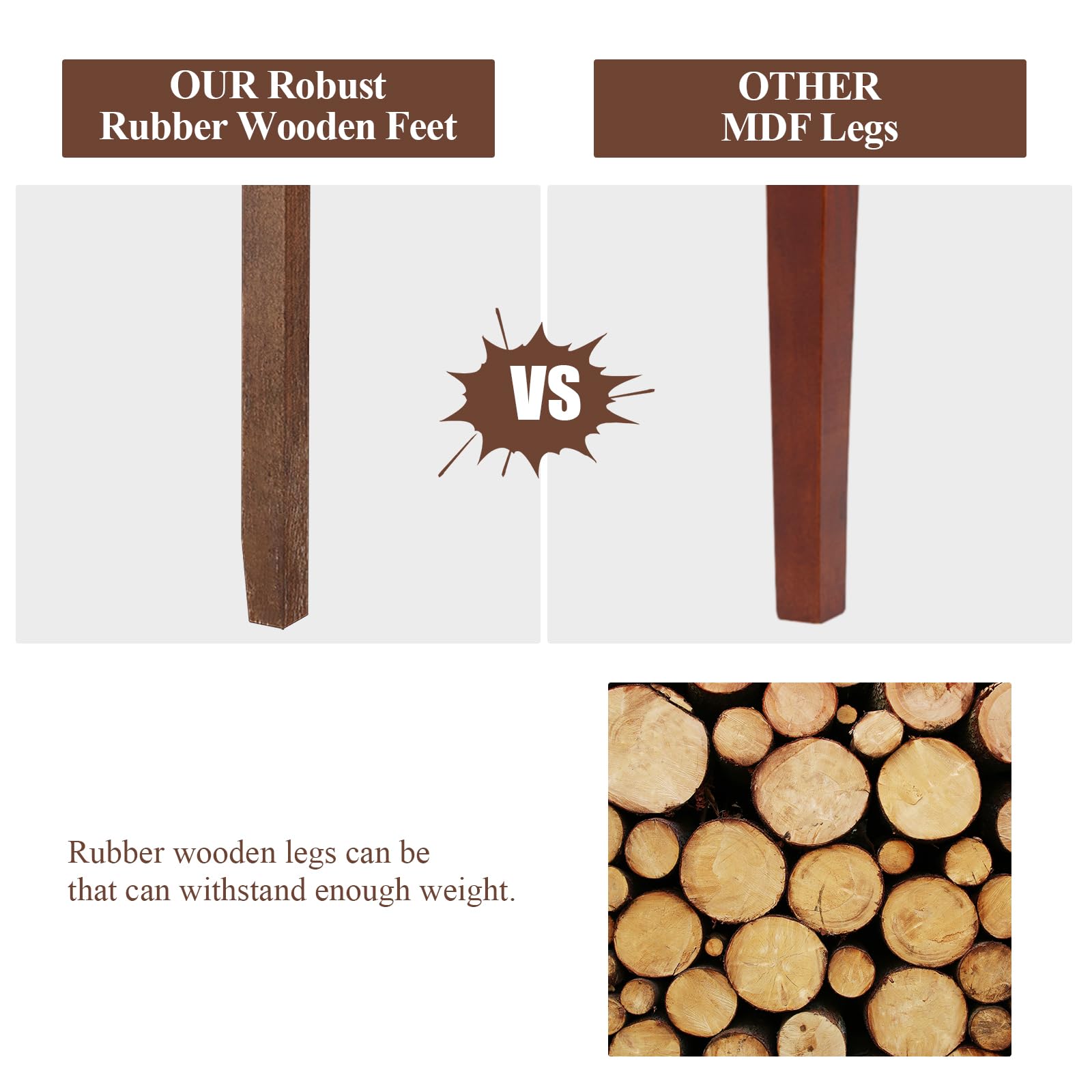 Rubber wood legs are solid and not easy to deform
