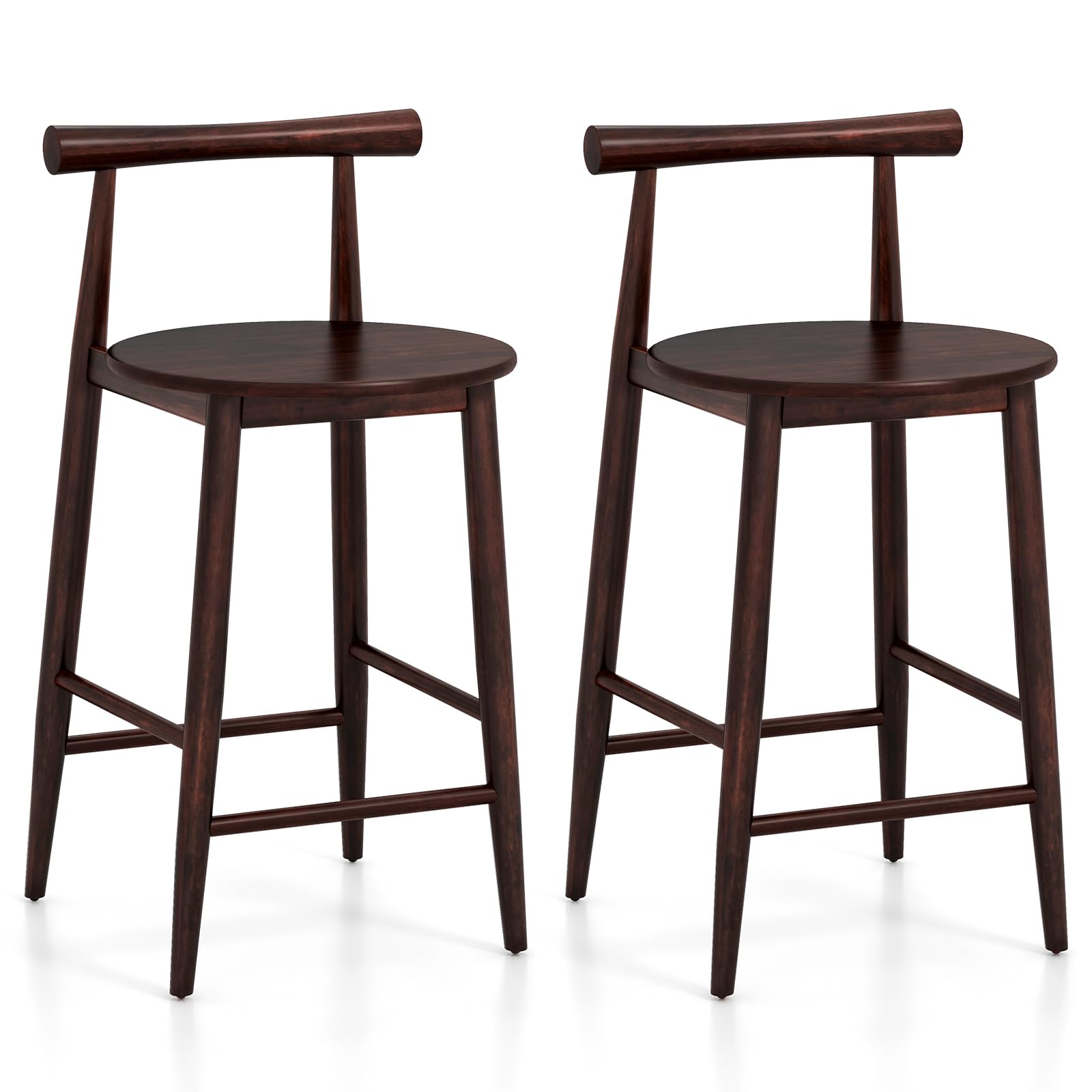 Add sophistication to your room with our bar chair set of 2! The wooden kitchen island bar chairs are designed with a rounded seat, comfortable backrest and rubber wood footrests of 2 heights for ultimate relaxation. Besides, these sleek counter height/bar height stools feature a sturdy wood frame and resilient acacia wood legs for lasting quality, which not only unveil the charm of nature in your dining space but also provide strong support. The smooth surface is polished with delicate craftsmanship to elevate the aesthetics of your home, breakfast area, restaurant, or cafe. Lastly, you can elevate your seating experience to prevent wobbling with adjustable foot pads.