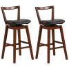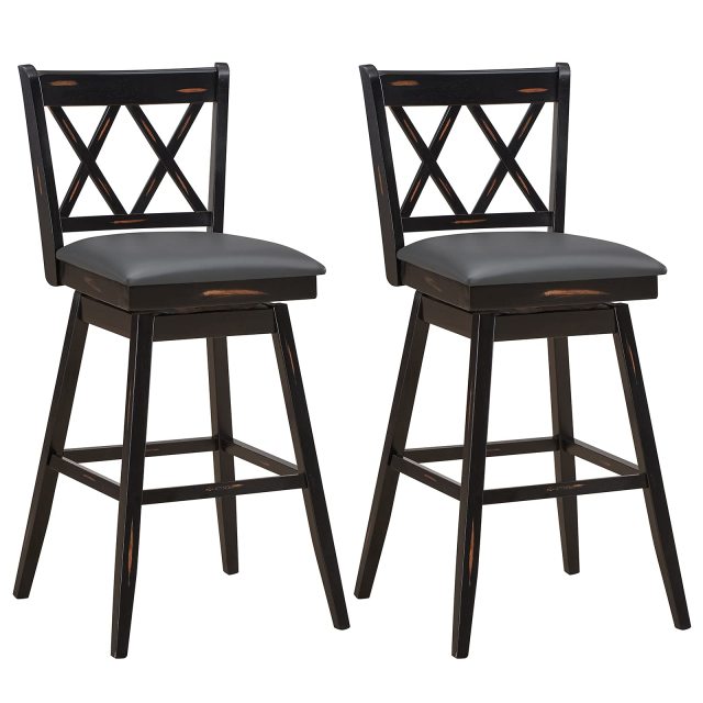 Enjoy seating with our swivel counter/bar height stool!!! Ergonomic backrest with curved design, sponge padded seat cushion and additional footrest help to well support your body. The soft cushion covered with PU leather ensures a comfortable sitting experience. In addition, the swiveling seat also allows you to freely change directions to chat with friends. Crafted with natural rubber wood, the chair offers you a timeless and durable seating solution. It can support up to 355 lbs. Thanks to its stylish style and classic colors, it will match different decor and you can use it in kitchens, dining rooms, restaurants, bars, cafes, etc.