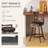 Are you tired of having to constantly adjust your bar stool to face different directions? Look no further than our 360° swivel bar chair. Not only does our swivel bar chair offer unbeatable convenience, but it also prioritizes your comfort. Designed with a soft sponge cushion and an ergonomic curved backrest, it provides optimal support for hours of relaxation. And let's not forget about the convenient footrest, which adds an extra touch of comfort to your feet. Besides, the rubber wood frame is sturdy enough and offers a touch of elegance and sophistication to this chair, making it suitable for bars, kitchens, living rooms, or cafés.