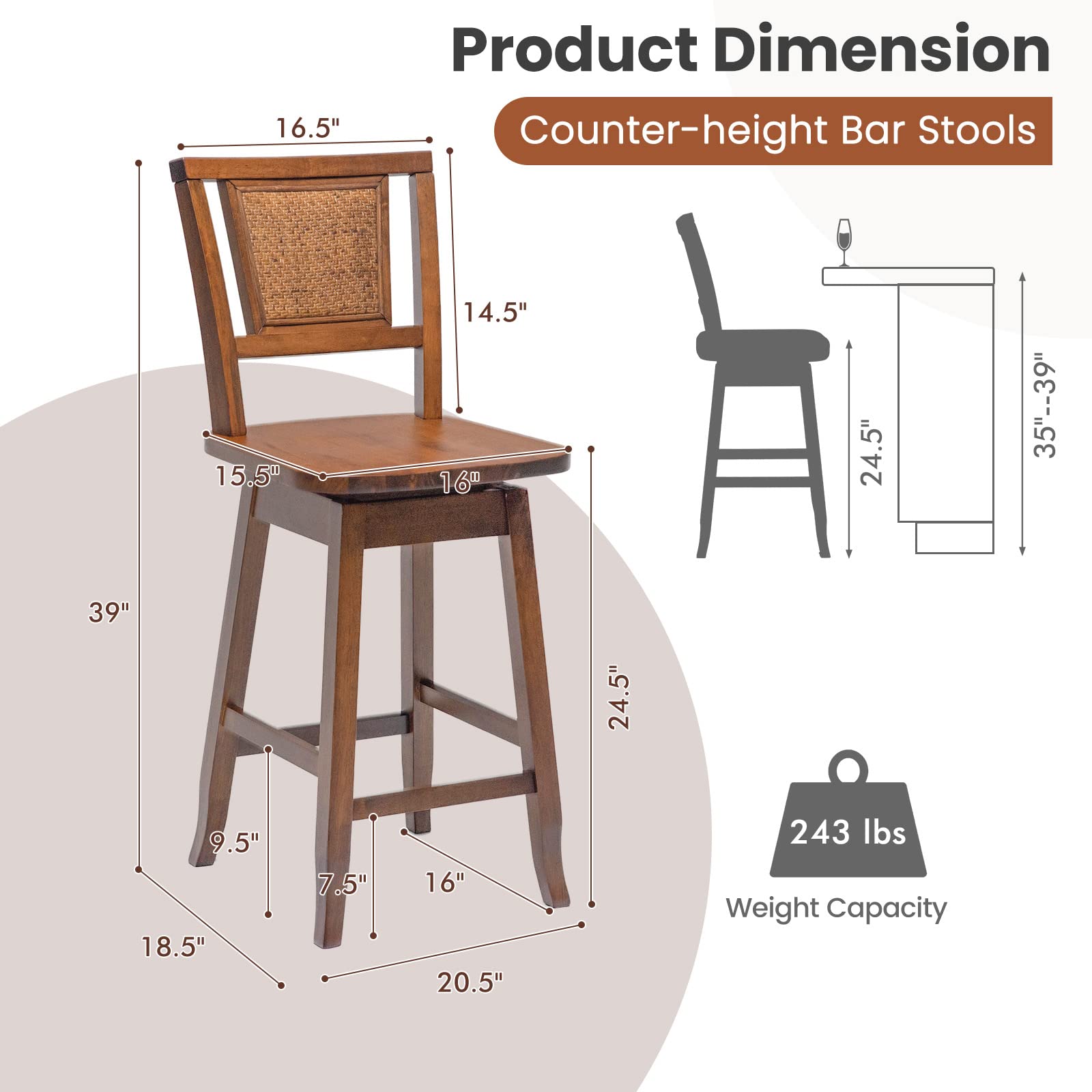 Suitable for 35”- 39” high counters or tables