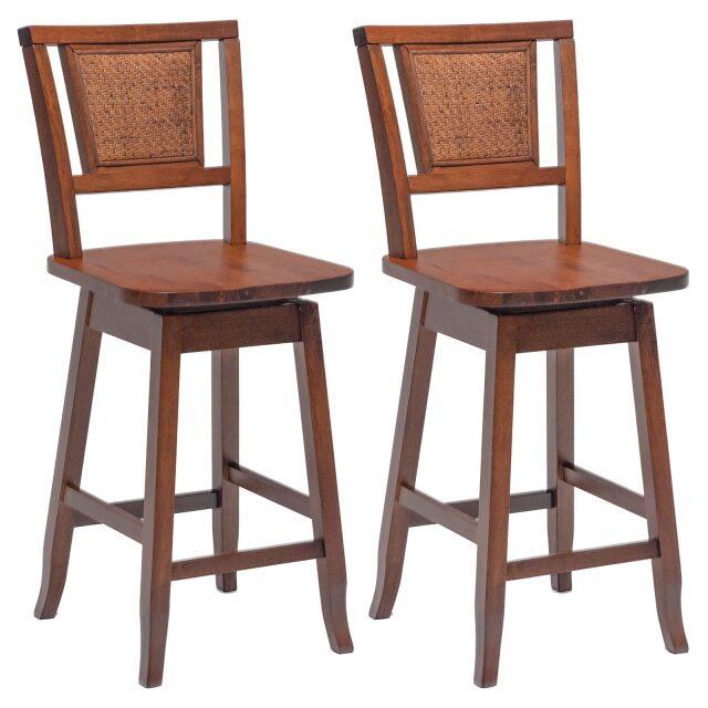 Elevate your seating experience with our set of 2/4 swivel barstools, designed for ultimate comfort and style. Featuring a unique hollow back design and contoured seat, each ergonomic counter height bar stool provides a cozy seating experience and supreme comfort for dining or entertaining. The 360-degree swivel allows for easy socializing, perfect for family gatherings or home bars. Solid rubber wood construction provides reliability and strong support for long-term use. In addition, an integrated comfortable footrest is designed for added support. These pub stools seamlessly blend into various interior styles, making them suitable for bars, kitchens, cafes, bistros, and more.