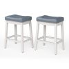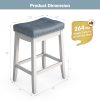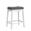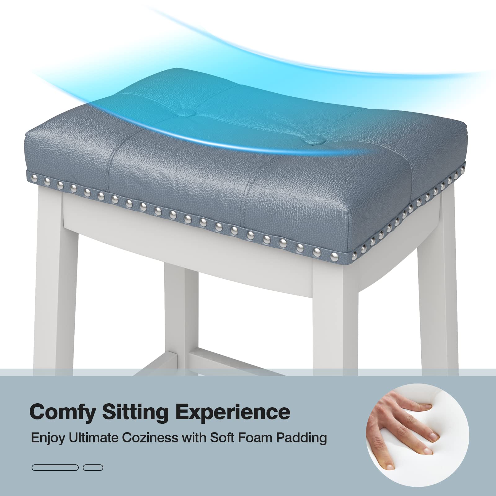 Built with solid rubber wood in brown finis, the stool has a sturdy construction with stable square legs and non-slip feet, holding weight up to 264lbs for long service time. The comfortable saddle seat is upholstered with thick and high density foam cushion, accented with a exquisite nailhead trim design, adding a striking element to its simple clean profile. These chairs are very comfortable, elegant and edgy for you hosting parties or sharing a breakfast with family or friends. Designed in counter (24") height, this stool set makes your kitchen island, work table, existing counter a welcoming place where everyone wants to gather. And these chairs can slide under the table to save space. With elegance and sophistication look, the saddle-seat stool will will bring desired comfort and classic style when matched with your living room or dining room.