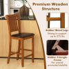 Crafted with an inclined slatted backrest that perfectly contours to your body, you’ll experience ultimate comfort. The padded seats, upholstered with premium PU leather and sponge, offer luxurious comfort and support. A wonderful addition to each bar chair is the 8” high added footrest, which will enable you to stretch legs, delivering better comfort. Made from solid rubber wood, these kitchen island chairs are built to withstand a weight of up to 275 lbs, ensuring safety and durability. Enhanced stability is further ensured with hidden triangle frames. With its vintage design, this bar chair set adds a touch of timeless vintage style to any space. Easy to maintain and built to last, these bar chairs will remain in impeccable condition for years. Assembly is a breeze with the included manual and hardware.