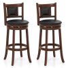 Our bar height stools will be a good choice to match your kitchen island or dining table. With 30.5” seat height, our stools are nice for 40”-43” tables. The 360-degree swiveling seats allow you to effortlessly chat with others without getting up or moving the chair. To ensure your sitting comfort, we design our chairs with ergonomic backrests, cushioned seats and round footrests. The cushions are covered with quality PVC leather and padded with bouncy sponge. You won’t feel uncomfortable after long-lasting sitting. What’s more, our bar stools are made of superior rubber wood material for high durability.