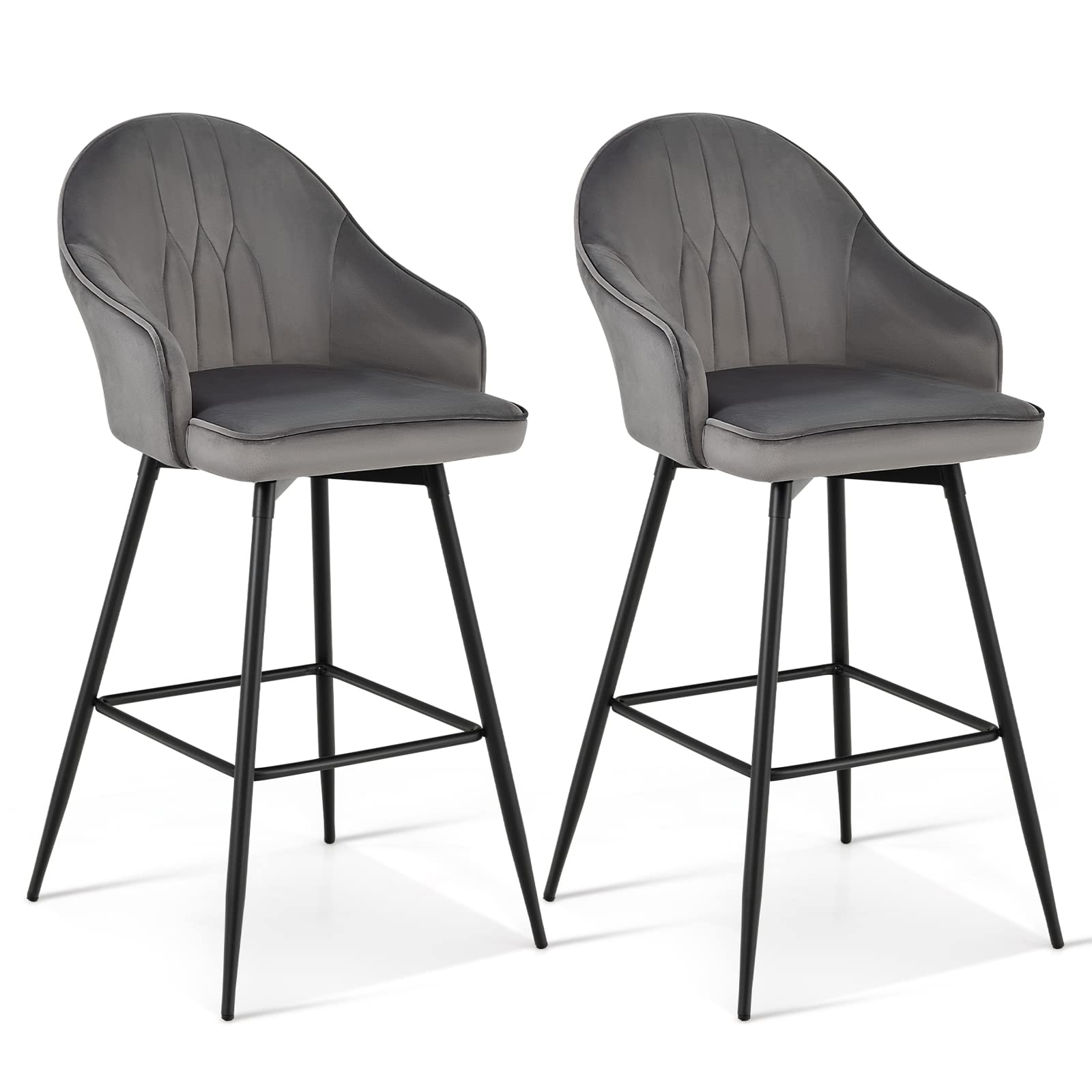Enjoy a leisurely lunch, romantic dinner and evening cocktail with our bar stools! 360-degrees rotatable design brings much convenience to chat with friends. High density sponge padded seat and soft velvet surface offer a sense of comfort when you sit in the stool. Moreover, the ergonomically shaped backrest fits your body curve to achieve ultimate comfort. Supported by heavy-duty steel legs, the bar stools are not easy to wobble or shake. With modern design, clean lines and elegant appearance, the bar stool set matches well with interior decoration. Whether used in the dining room, kitchen, or restaurant, this well-designed bar stool set will undoubtedly be an ideal choice.