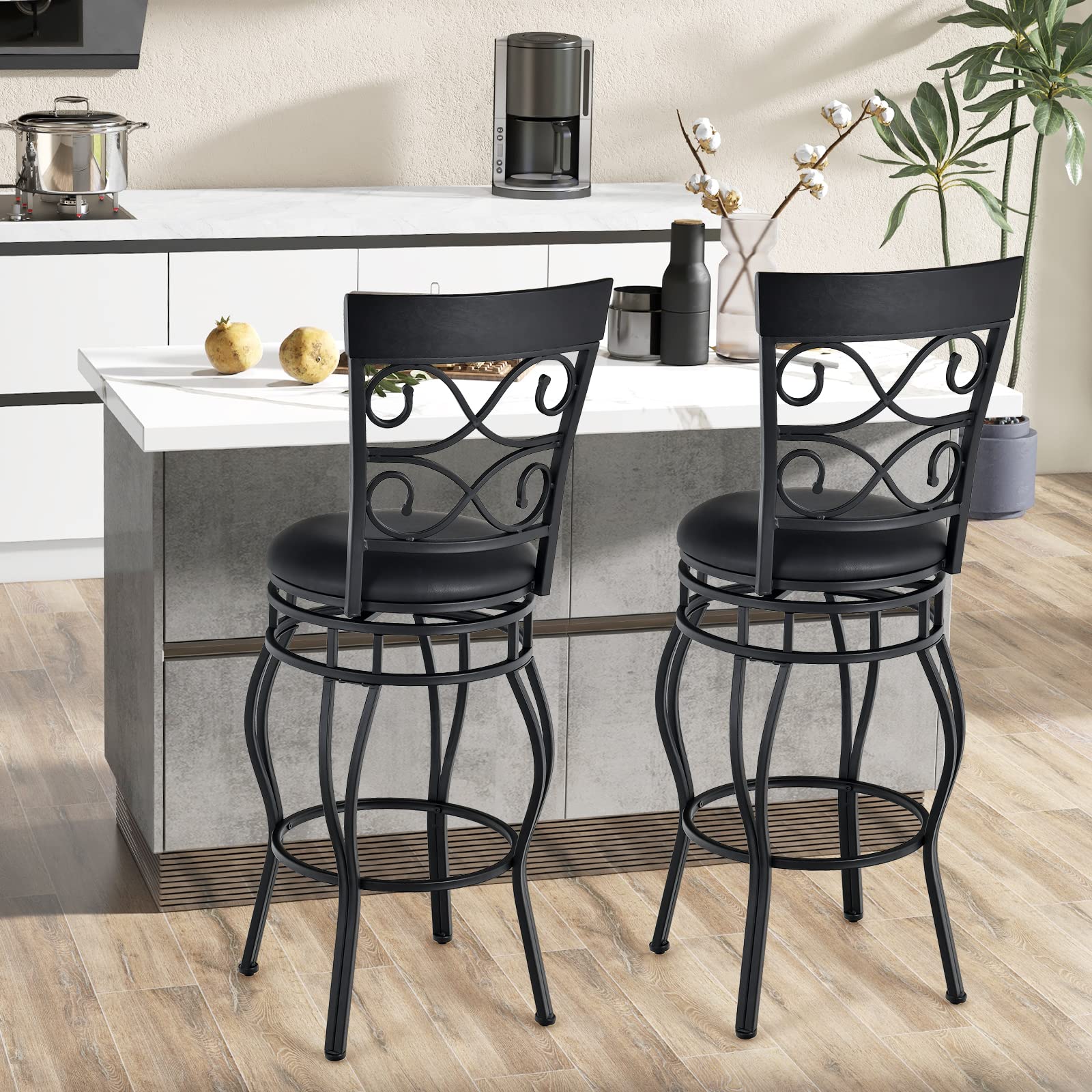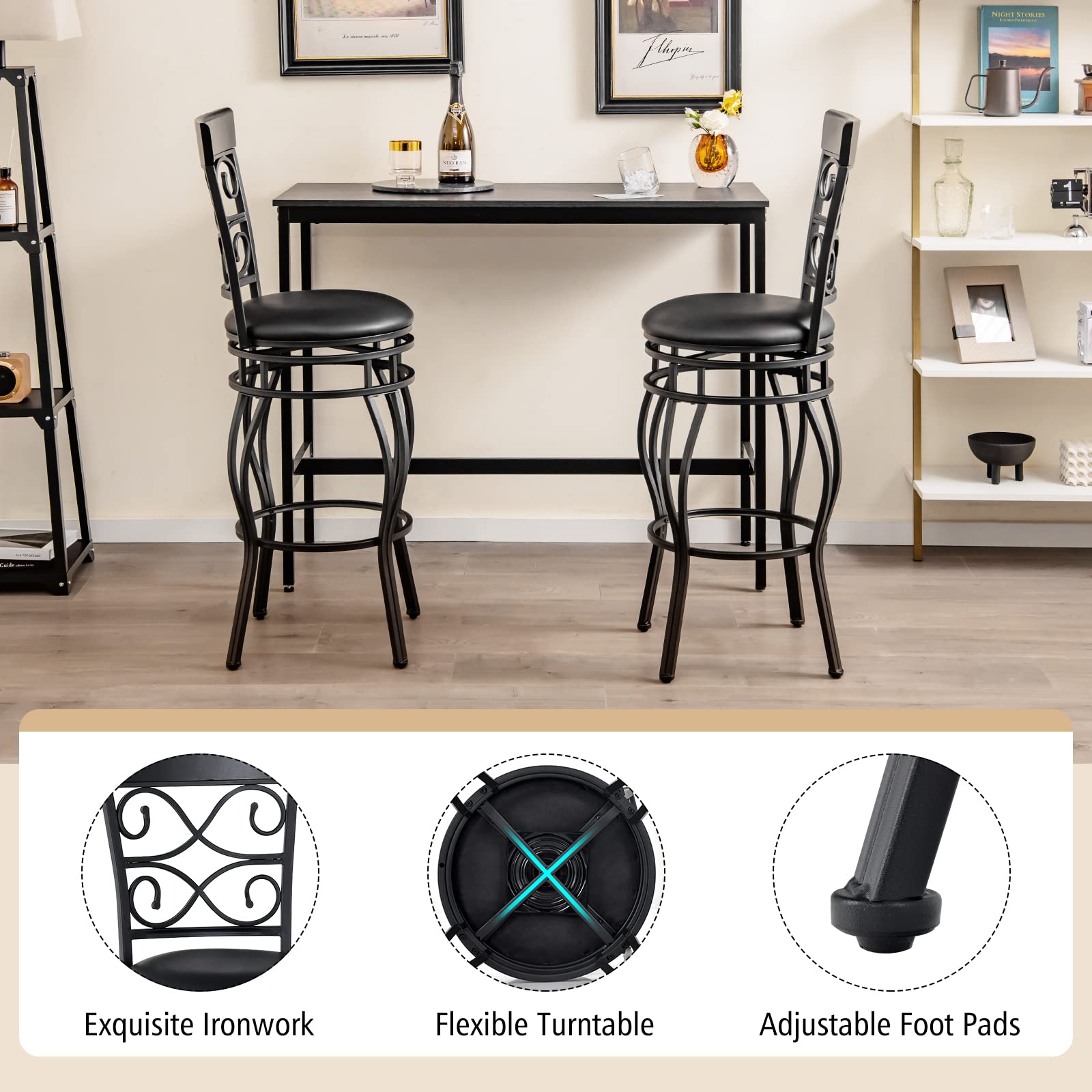 Looking for furniture for your home bar? Check out this swivel barstool set! Extremely comfortable upholstered bar chair with soft cushion and backrest allows you to relax your mind and body after a tiring day at work. The 360° swivel design is not only convenient for you to chat with your family and friends, but also facilitates your access to drinks. The bar stool has a heavy-duty metal frame with high stability. And its surface has a rust-resistant powder coating, making long-term reliable use possible. Ideal for commercial or home use! There is no doubt that every guest who comes to your home will be impressed by this vintage and elegant bar stool set.