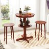 Bar Table Set 2-Tier Round High Top Table with Storage Shelf & Pedestal Base