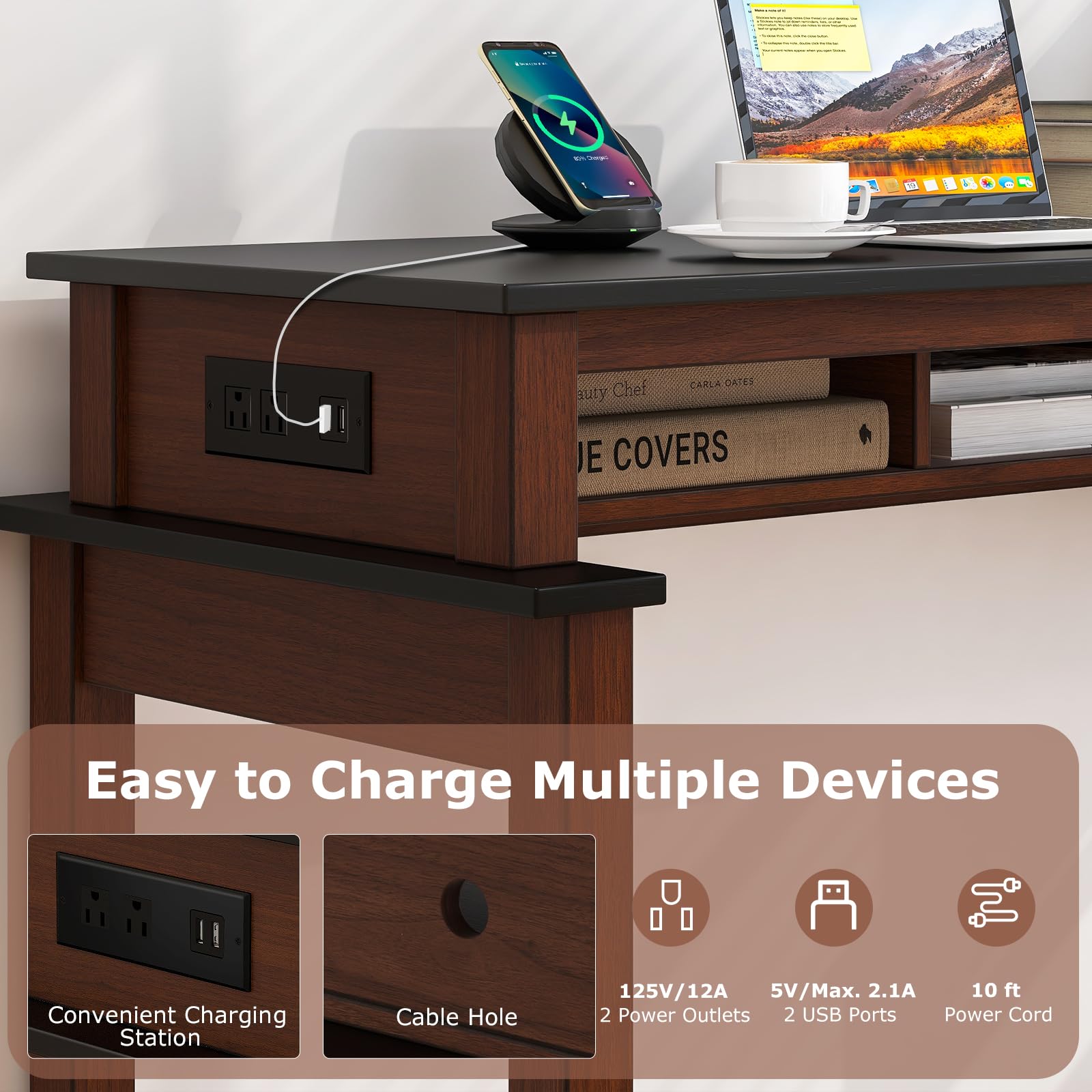 Wide tabletop and 3 compartments offer abundant storage space