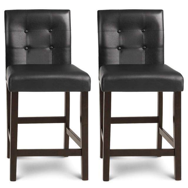 Barstools Set Faux Leather Upholstered Bar Stools with High Backs and Footrests