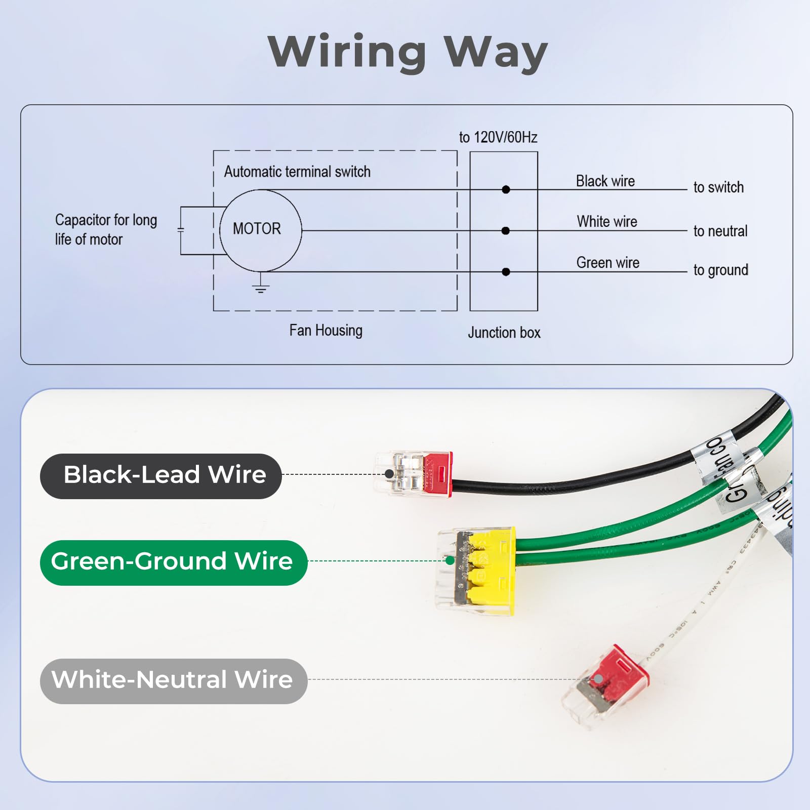 Wiring way: black-lead wire, green-ground wire, white-neutral wire