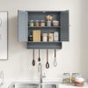 Bathroom Wall Cabinet Over The Toilet Storage Cabinet w/ 2 Doors Adjustable Shelf and Towel Bar