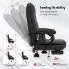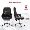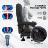 Indulge in great comfort and relaxation with the ergonomic massage office chair. This luxurious chair features 6 vibration points for shoulder, back, and hip massages, along with 3 intensity levels and 5 preset modes. Sink into the supportive sponge and skin-friendly PU leather of the desk chair, complete with a padded headrest, armrests, and a retractable footrest. Customize your seating experience with the reclining backrest, height adjustable and swivel seat, catering to different postures and heights. Ideal for big and tall individuals, the executive chair can withstand up to 400 lbs with its sturdy metal base and heavy-duty gas rod. Enjoy smooth mobility on universal wheels, making this gaming chair perfect for any activity, whether it’s working, gaming, reading, or simply relaxing.
