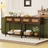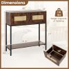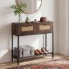 This narrow sofa table fits comfortably in entryways, living rooms, hallways, and foyers without occupying too much space. 2 PE rattan drawers provide a natural look as well as ample storage for small essentials, while the bottom open shelf offers additional room for display or storage. The bottom shelf stands 4 inches elevated, making it easy to clean underneath. Supported by a sturdy metal frame, this console table promises long-lasting support and stability. It also includes 2 anti-toppling devices for added safety, helping to keep the table securely in place.