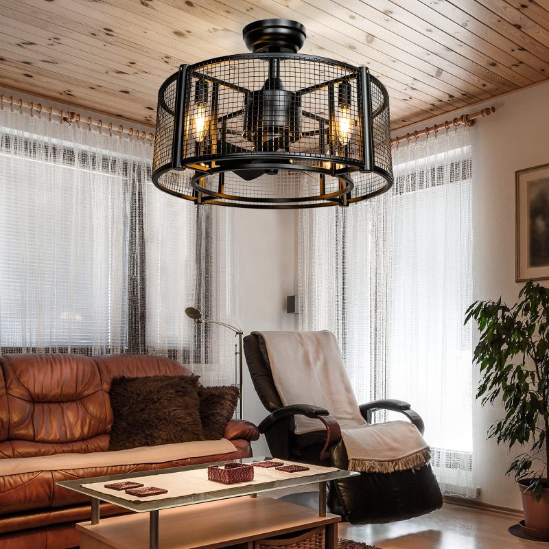 Caged Ceiling Fan with Light, 20 Inch Ceiling Fan Lights with Remote Control, Reversible Motor (No Bulb)