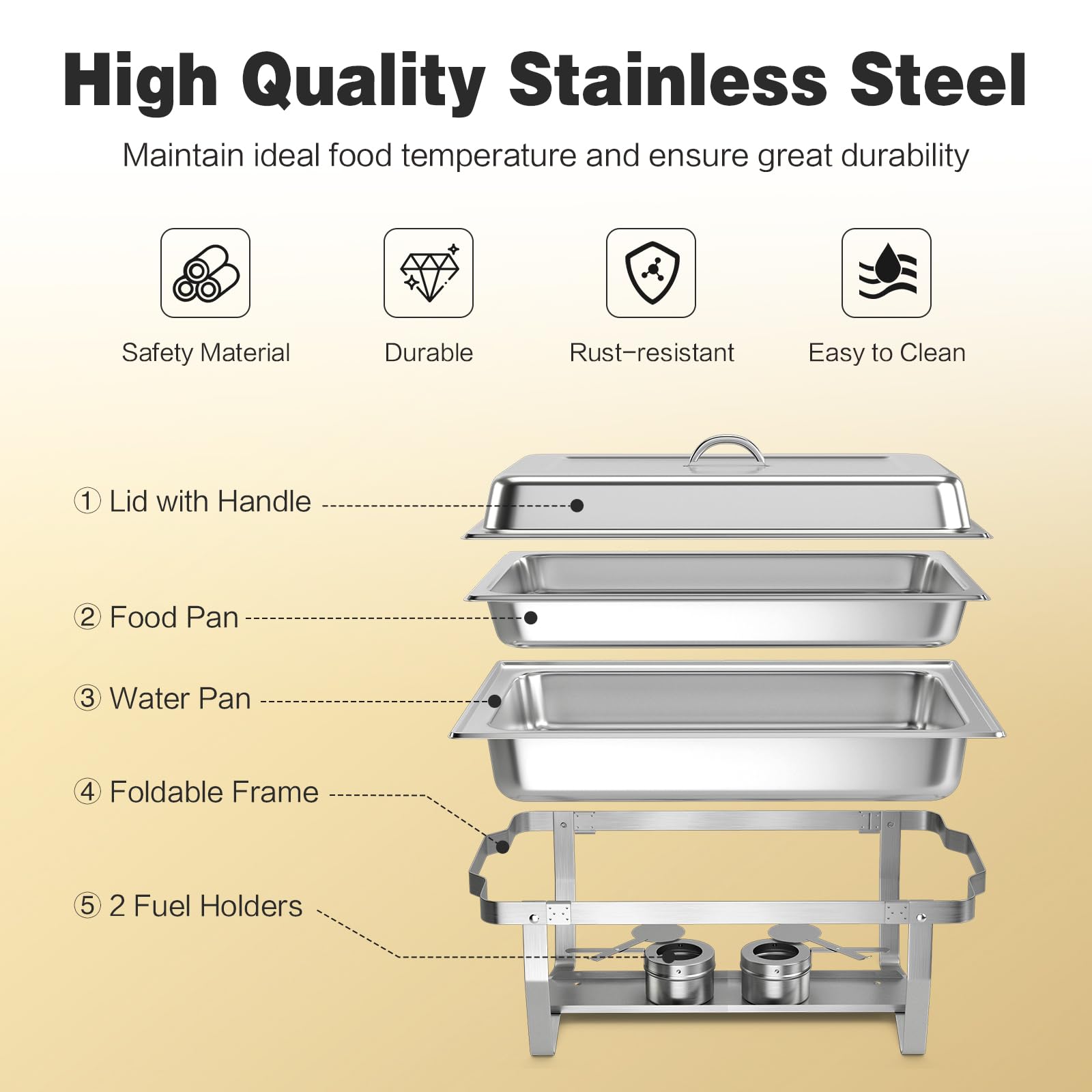 Chafing Dish Buffet Set 9 QT Large Capacity 2 Food Pans Water Pans & Fuel Holders