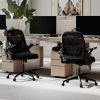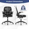 This ergonomic office chair provides you with the perfect blend of comfort. Covered by breathable mesh fabric and padded by high-density sponge, its seat delivers a cool and soft feeling. Meanwhile, the backrest is designed with lumbar support, also allowing for 90°-110° gentle rocking. Moreover, this computer chair is crafted well for your convenience, with SGS air rod for a 3" height adjustment to suit diverse desks. The 360° swivel seat and 5 universal casters for easy movement also help you engage in conversations effortlessly. When not in use, this rolling office chair's armrests can be flipped up 90° to save your valuable space.