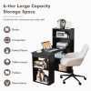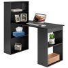 Do you need a practical desk for working or studying at home? Then choose this computer desk & bookshelf combo. Combining a desk, a 4-tier bookshelf, and a 2-tier storage shelf, this unique workstation features a great storage solution for your books, decorations and sundries while providing a generous workspace. It is worth mentioning that you can remove the middle shelf of the storage rack when you install the desk, so that it is large enough to accommodate your computer post. And you can freely place this table according to the room layout and your preference, orienting the bookshelf to the left-hand side or the right-hand side. In addition to being used as a computer desk, this unit can also be used as a craft table or a bar table, which can be flexibly used in the study, bedroom and living room. More importantly, the computer desk is of stable structure and good quality, so it can serve you for a long time.