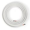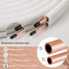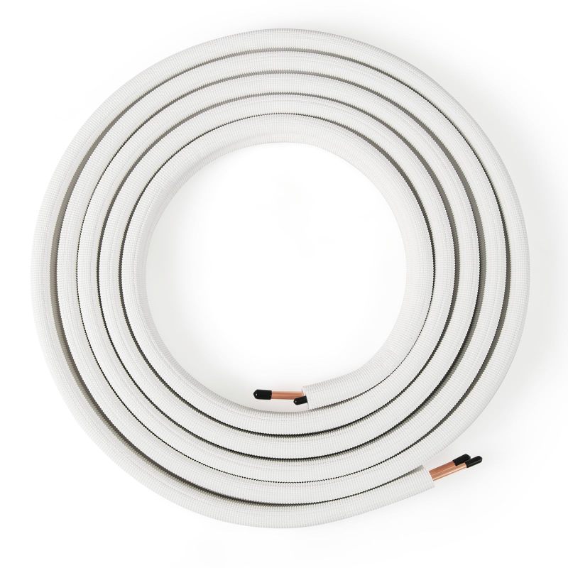 Ideal for extending mini split AC systems, heating pumps, and various HVAC setups, this hose features a 1/4 inch O.D. high-pressure pipe and a 3/8 inch O.D. low-pressure pipe. The hose can be perfectly tailored for numerous applications including homes and commercial settings. The triple-layer insulated construction ensures maximum durability and thermal retention. For installation, simply unroll, cut to the desired length, and weld to the original piping. Invest in this reliable extension for a seamless and long-lasting upgrade to your air conditioning systems.