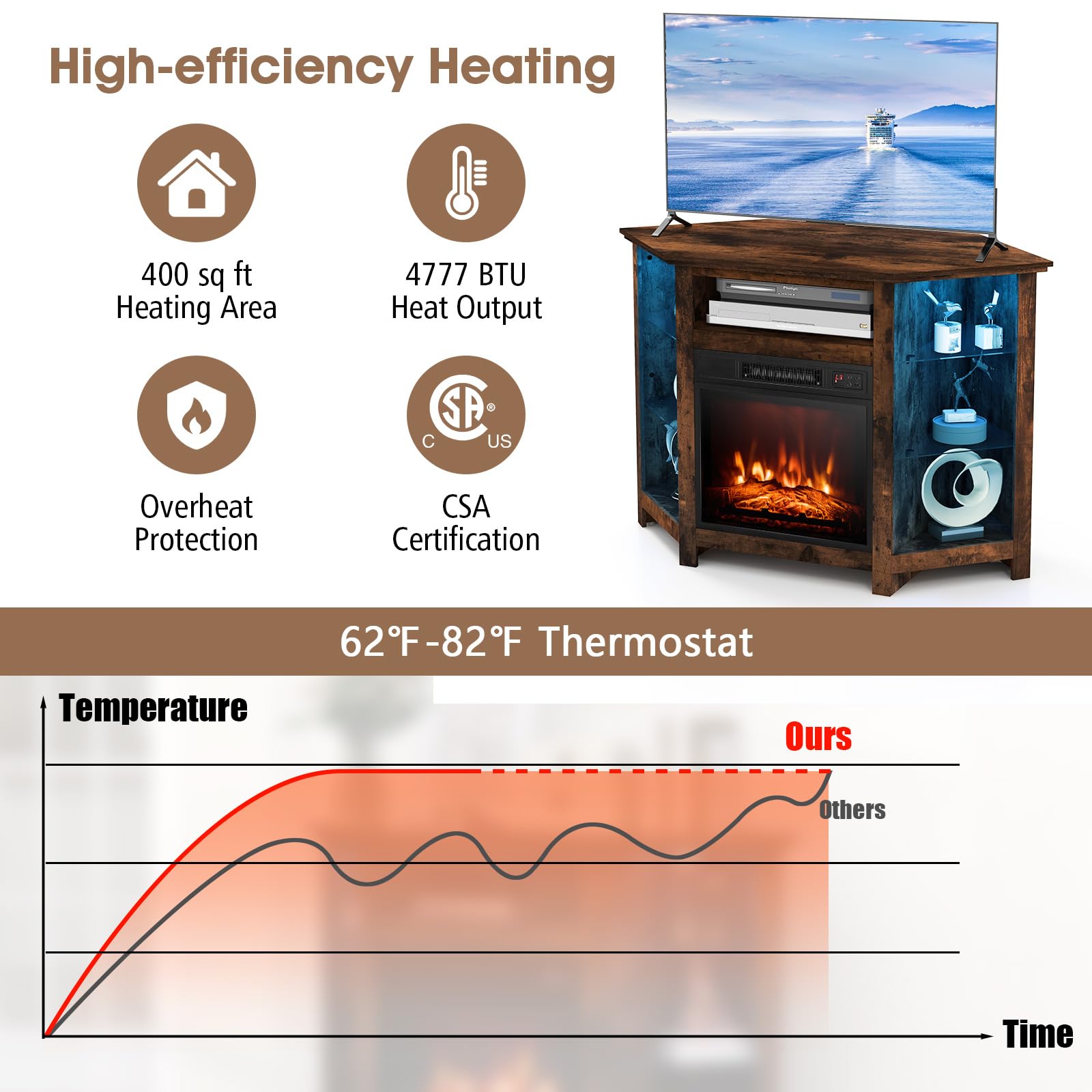 Corner Fireplace TV Stand with LED Lights for TVs up to 50”, Modern Entertainment Center with Electric Fireplace