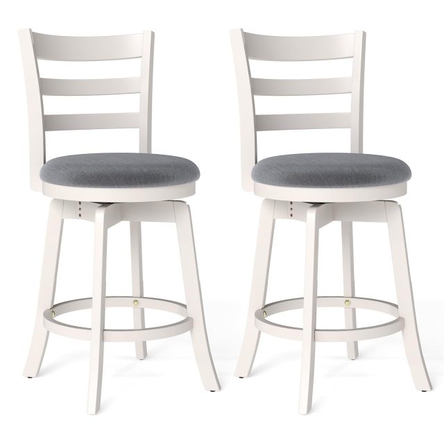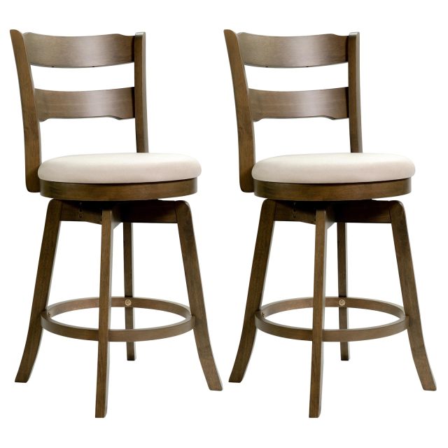 Elevate your kitchen or bar experience with these stylish 360° swivel wood barstools. With a solid rubberwood foundation, each swivel stool offers sturdy and reliable support. Moreover, soft sponge fillings and breathable fabric provide a cozy seating experience. The smooth swivel seat allows effortless movement and social interaction, while the ergonomic curved backrest and comfortable footrest encourage proper posture. These 2/4 bar height swivel chairs with well-made features add timeless charm and reliable comfort to your space.