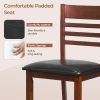 It is expertly crafted from solid rubber wood to withstand the test of time. With a weight capacity of up to 275 lbs, these kitchen chairs offer reliable support for daily use. Enjoy ultimate relaxation with the comfortable padded seats, meticulously made with superior PU leather and sponge for hours of sitting without discomfort. The addition of a comfy backrest with a breathable slatted design and 8'' high footrest ensure complete comfort, making mealtime or conversations a cozy affair. Boasting a charming vintage design, the counter height bar chair set is a versatile addition and perfectly complements any kitchen, restaurant, or cafe. The hassle-free assembly allows you to quickly indulge in the luxury of these bar chairs. Elevate your space with the timeless beauty and impressive craftsmanship of this remarkable bar chair set of 2/4.