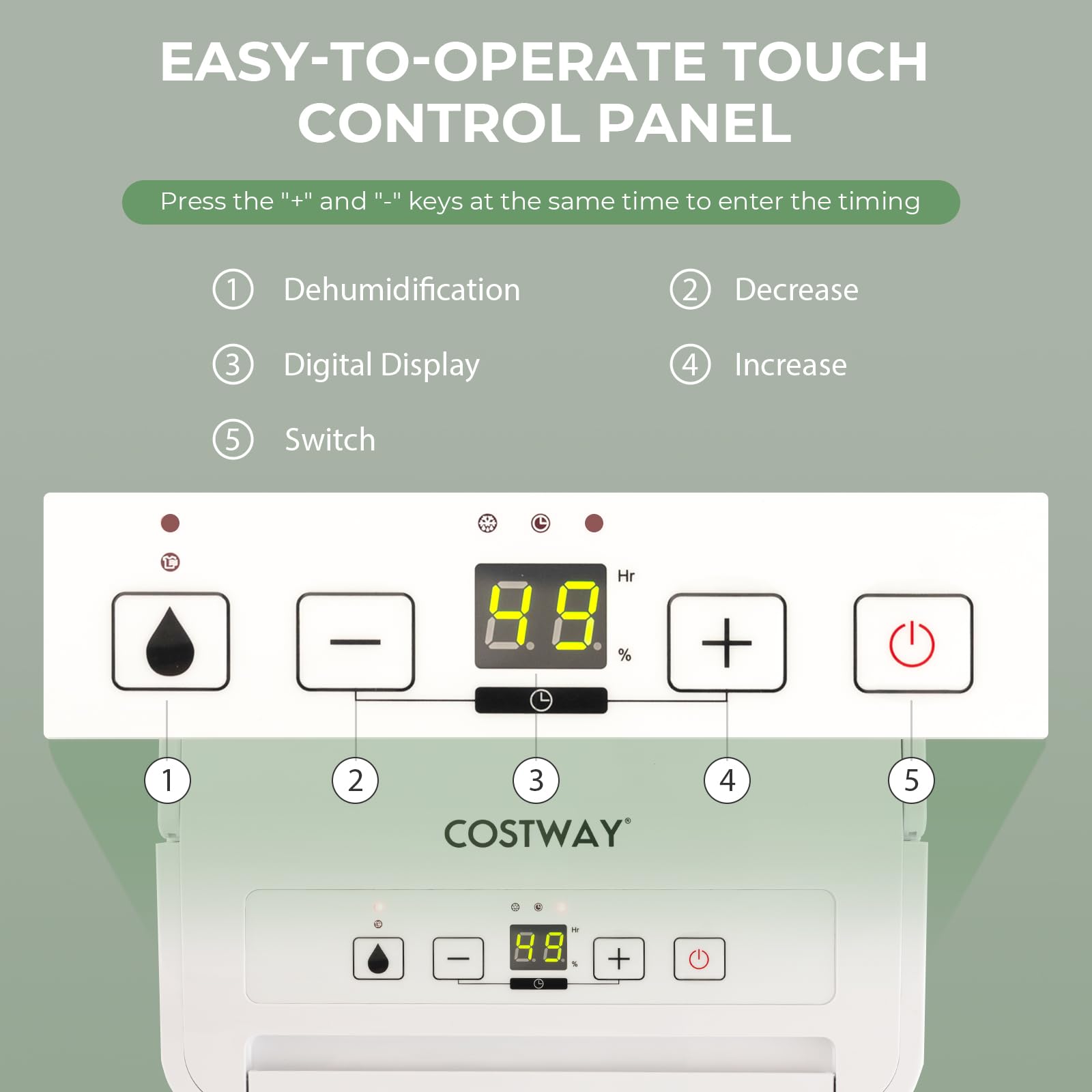 - 【Easy Operation & Ultra Quiet:】The dehumidifier comes with an easy-to-operate touch control panel and clear digital display. You can press the "+" and "-" keys at the same time to enter the timing and set 0-24 hour timer as you need. Plus, the low noise operation≤38.6 dB won't disrupt your sleep.