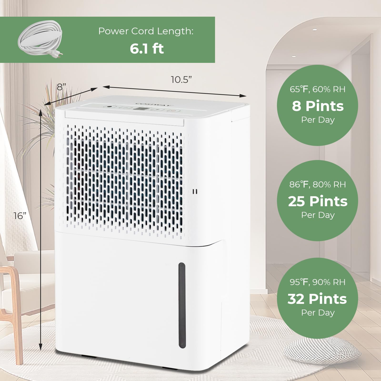 Dehumidifier for Basement, 2000 Sq. Ft 32 Pint Quiet & Energy Efficient Dehumidifier w/Continuous/Drying/Auto Mode