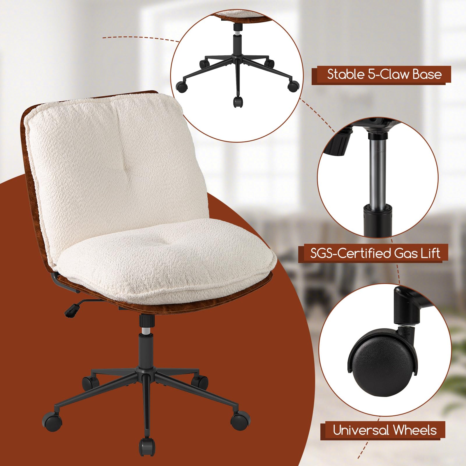 Enjoy a fully customizable sitting position with a 12° tilt range and a height adjustable from 22.5" to 27". Our ergonomic design conforms to your body, while the soft, skin-friendly teddy fleece fabric and high-density sponge offer unparalleled comfort. When not in use, the chair allows for easy storage under your desk, maximizing your space. Built to last, the chair features a stable 5-claw base and a robust SGS-certified gas lift that can support up to 330 lbs. Whether for study, work, or gaming, this chair's modern, minimalist style makes it a versatile addition to any room. Elevate your workspace with a chair that enhances both productivity and style.