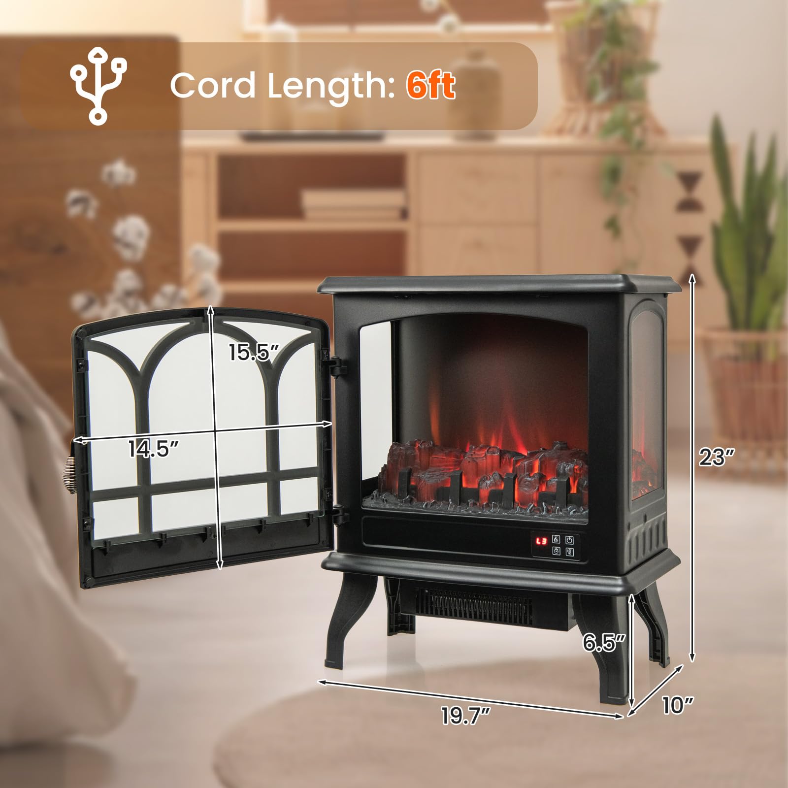 Electric Fireplace Stove with 3-Sided View, Remote Control, 1400W Portable Freestanding Heater with Thermostat