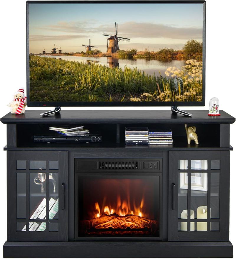 Electric Fireplace TV Stand for TVs Up to 55 Inches, 18-Inch Fireplace Insert with Remote, Overheat Protection