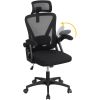 Indulge in unparalleled comfort and ergonomic support with our premium Ergonomic Office Chair. Designed to eliminate the fatigue associated with long hours of sitting, this chair features an adjustable lumbar support that allows you to find your ideal sitting angle between 90° and 115°. The 3 cm/1.2" lumbar support is customizable, catering to your unique needs for both work and relaxation. Easily adjust the height (110-119cm/43.5"-47") to maintain a healthy alignment. The 2D ergonomic headrest offers additional spine protection and fatigue relief with its 4" height adjustment and 60° rotation. Stay cool and comfortable with the chair's breathable mesh surface and high elastic sponge, providing a soft yet supportive seating experience. Effortlessly move around with the chair's 5 smooth universal wheels, offering noise-free mobility. Maximize your workspace with the space-saving design, including flip-up padded armrests, making it suitable for any home office room, study, or bedroom.