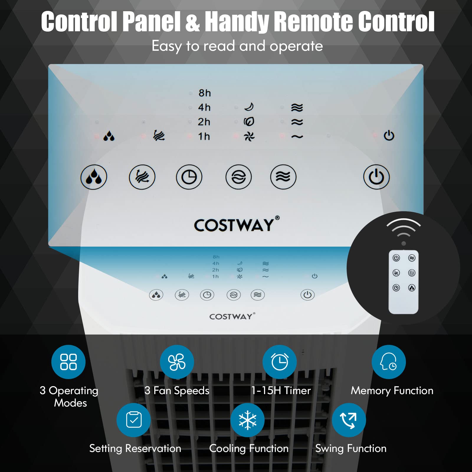 - 【Easy to Operate & Move】 Control the air cooler with the LED touch screen or included remote control. And 4 universal wheels and a built-in handle allow you to move the evaporative cooler from room to room.